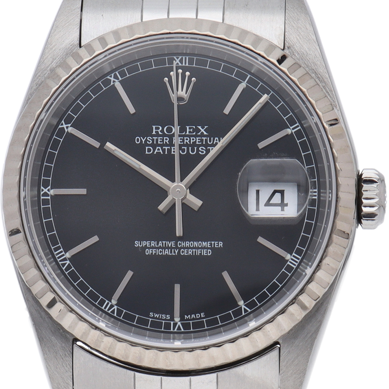 ロレックスのドレスウォッチの王道「デイトジャスト」。ホワイトゴールドとステンレスの組み合わせが上品で高級感を感じさせる1本です。