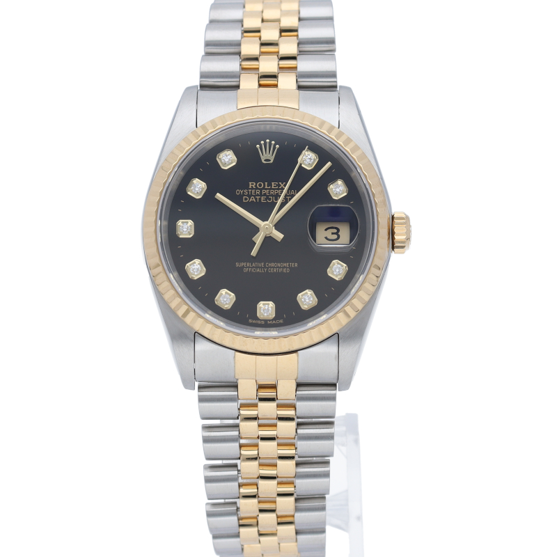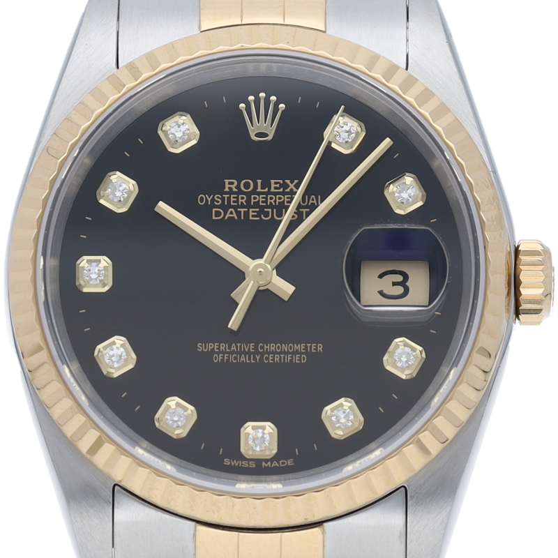 ロレックスのドレスウォッチで幅広い年齢層に愛されている「デイトジャスト」。イエローゴールドとステンレスのコンビ仕様に10Pダイヤが施されております。