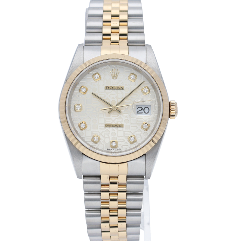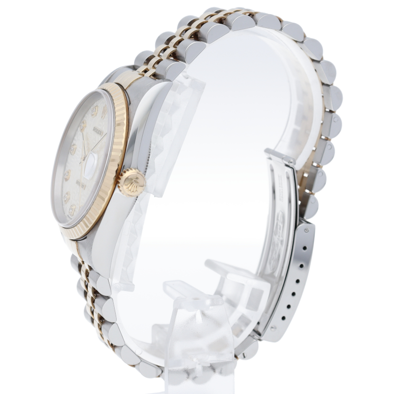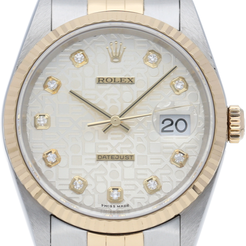 ロレックスのドレスウォッチで幅広い年齢層に愛されている「デイトジャスト」。イエローゴールドとステンレスのコンビ仕様に10Pダイヤが施されております。