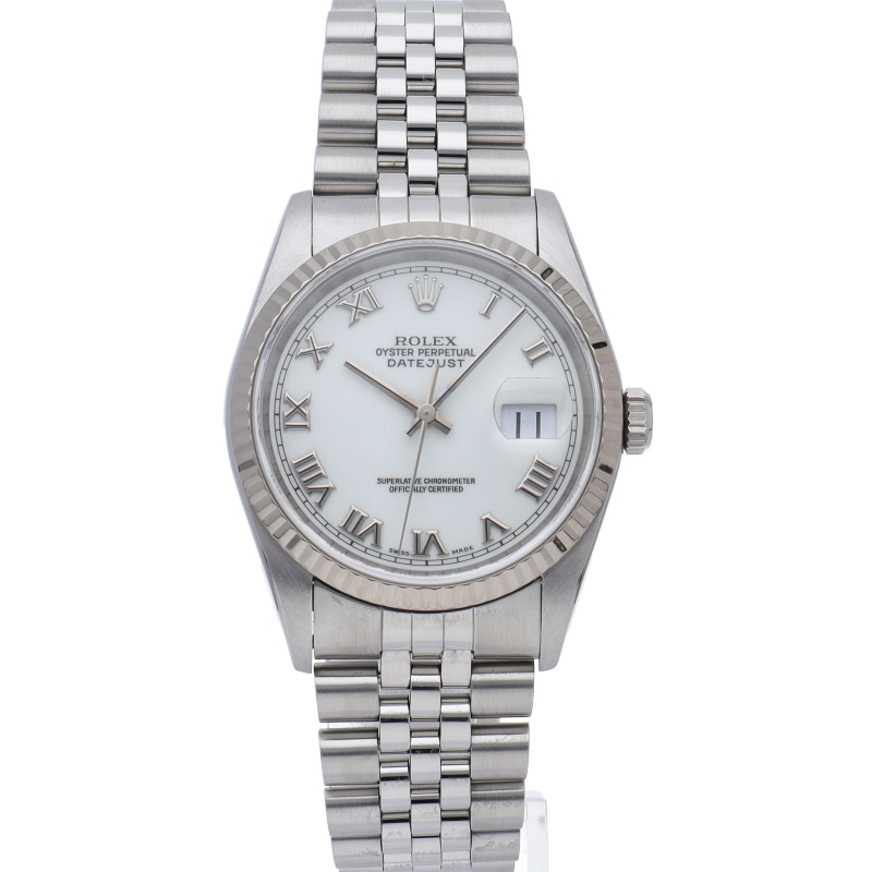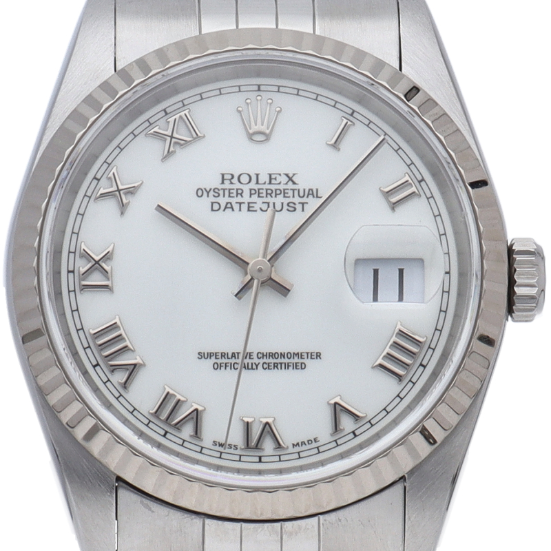 ロレックスのドレスウォッチの王道「デイトジャスト」。ホワイトゴールドとステンレスの組み合わせが上品で高級感を感じさせる1本です。ホワイトシャンタン文字盤。