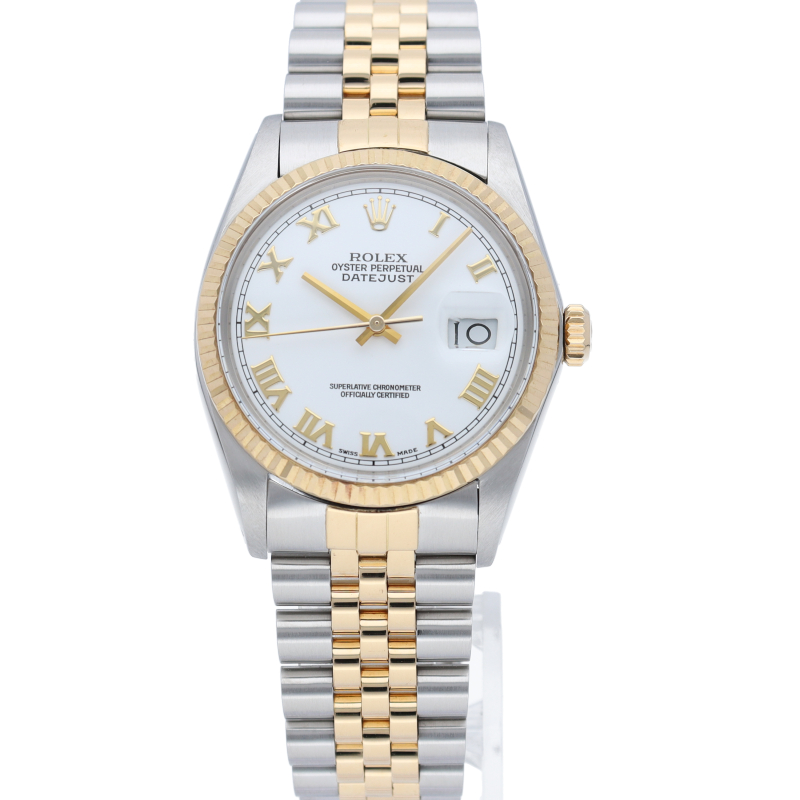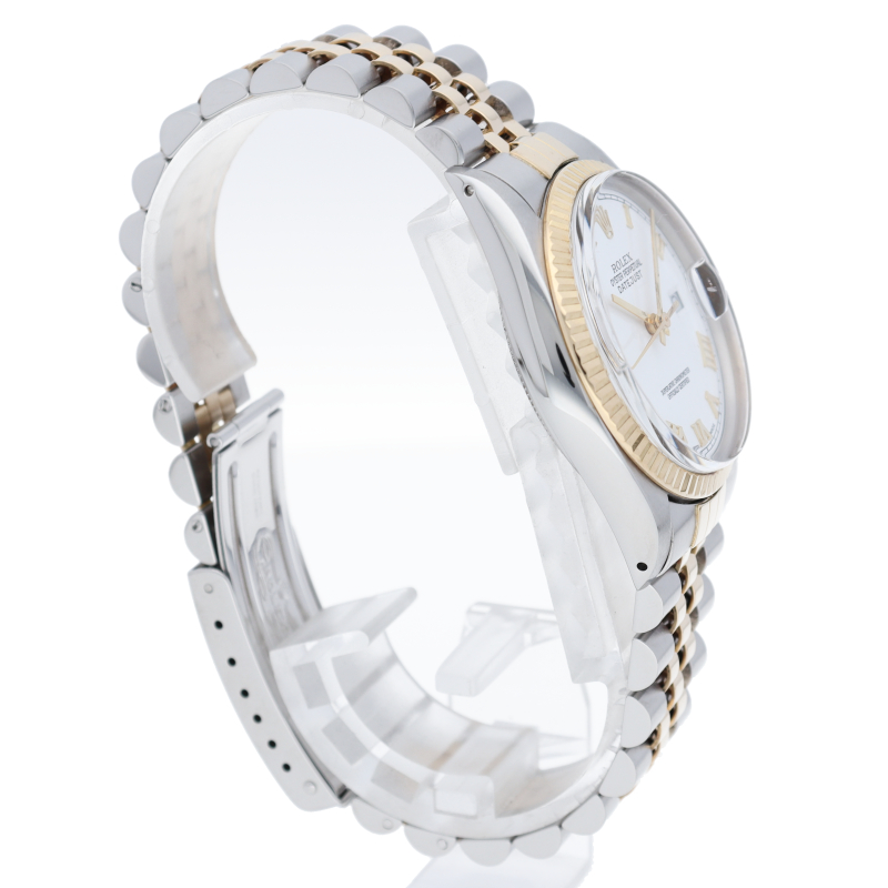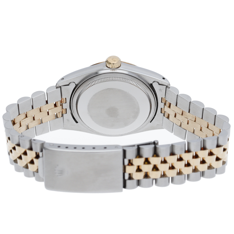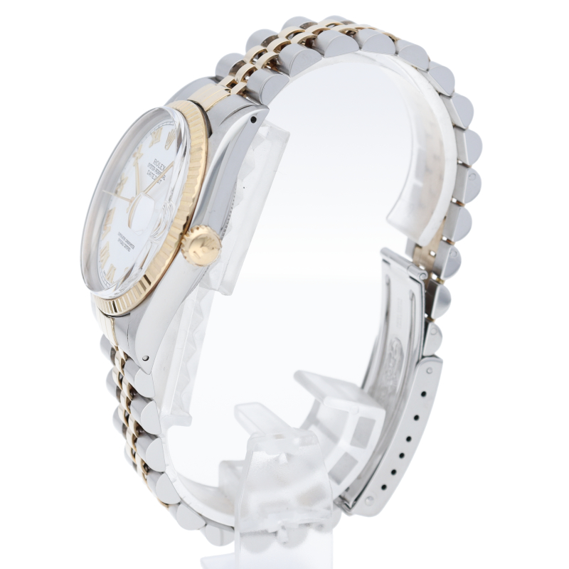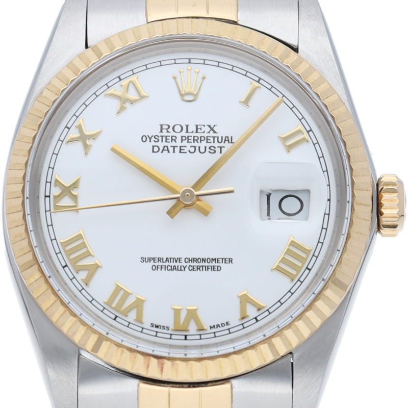 ロレックスドレスウォッチの王道「デイトジャスト」。イエローゴールドとステンレスの組み合わせが高級感を感じさせる1本です。プラスチック風防仕様。