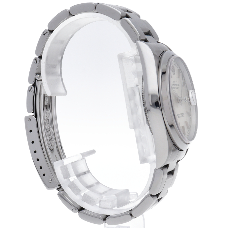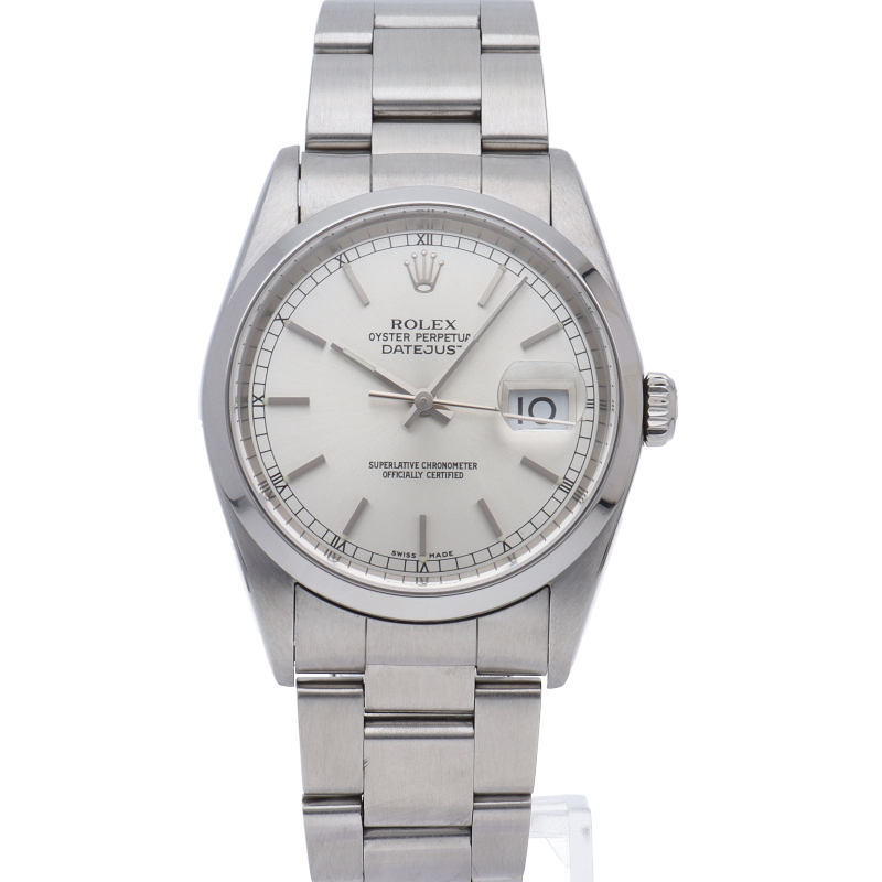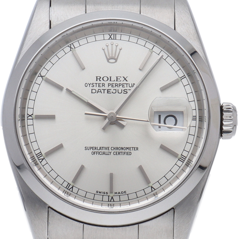 ロレックスのドレスウォッチの王道「デイトジャスト」。ポリッシュベゼルとデイト表示機能もついてスポーティーで人気度の高い1本です。