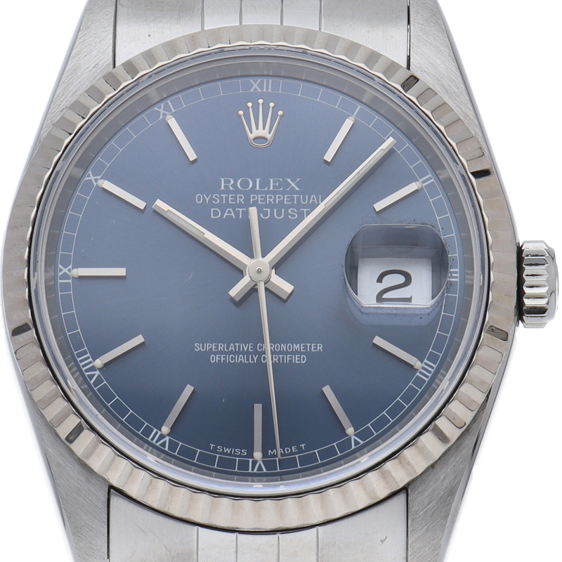 ロレックスのドレスウォッチの王道「デイトジャスト」。ホワイトゴールドとステンレスの組み合わせが上品で高級感を感じさせる1本です。
