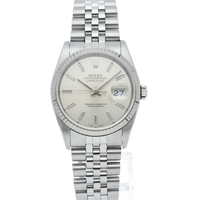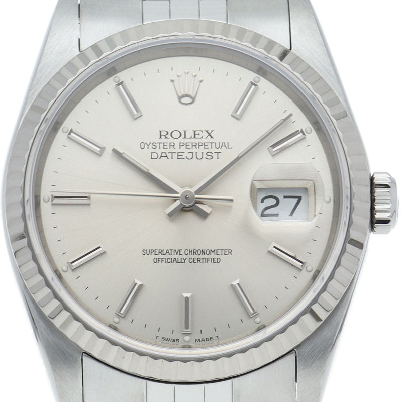 ロレックスのドレスウォッチの王道「デイトジャスト」。ホワイトゴールドとステンレスの組み合わせが上品で高級感を感じさせる1本です。