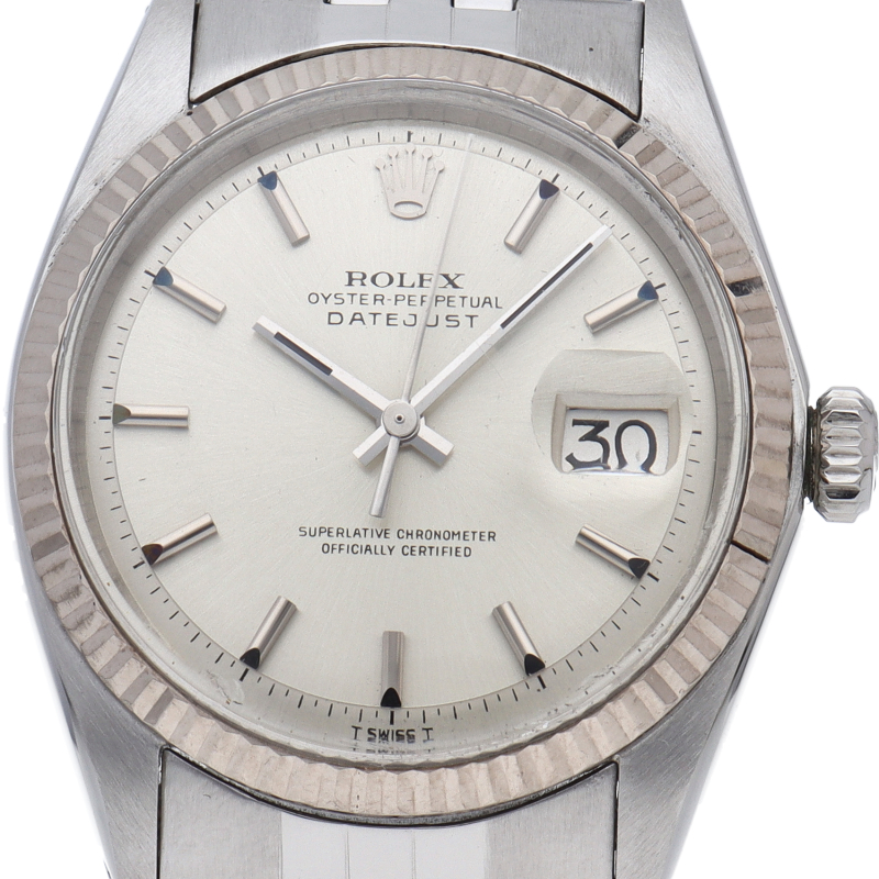 ロレックスドレスウォッチの王道「デイトジャスト」。ホワイトゴールドとステンレスの組み合わせが高級感を感じさせる1本です。プラスチック風防仕様。