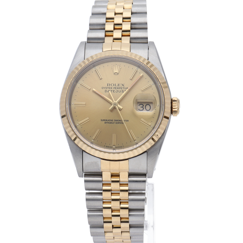 ロレックスのドレスウォッチの王道「デイトジャスト」。イエローゴールドとステンレスの組み合わせが上品で高級感を感じさせる1本です。