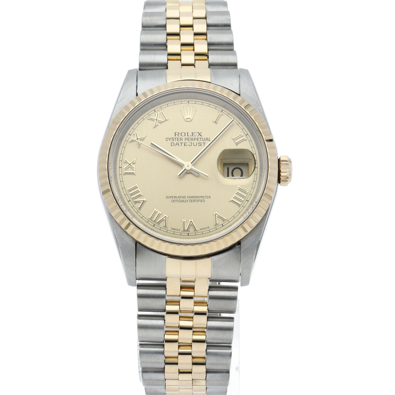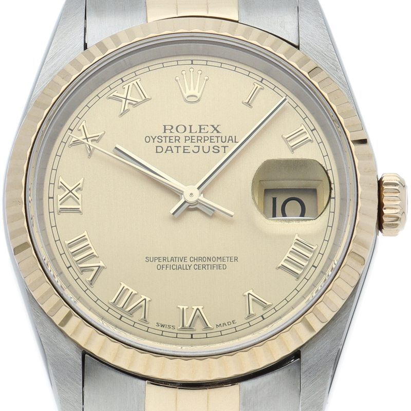 ロレックスのドレスウォッチの王道「デイトジャスト」。イエローゴールドとステンレスの組み合わせが上品で高級感を感じさせる1本です。