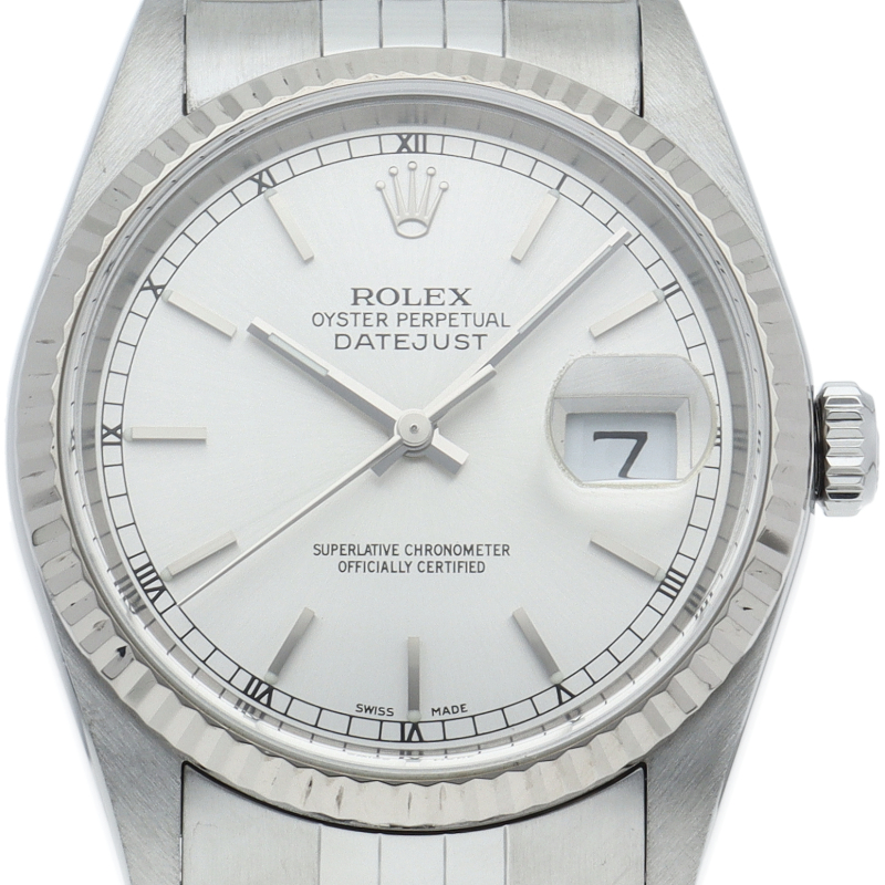 ロレックスのドレスウォッチの王道「デイトジャスト」。ホワイトゴールドとステンレスの組み合わせが上品で高級感を感じさせる1本です。