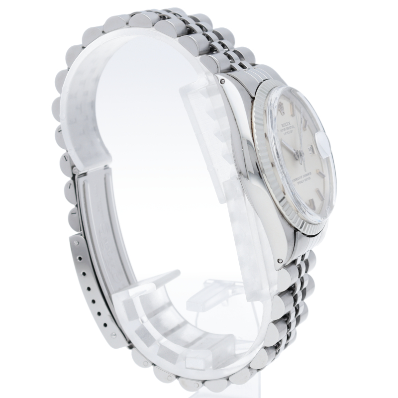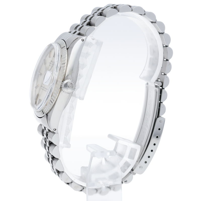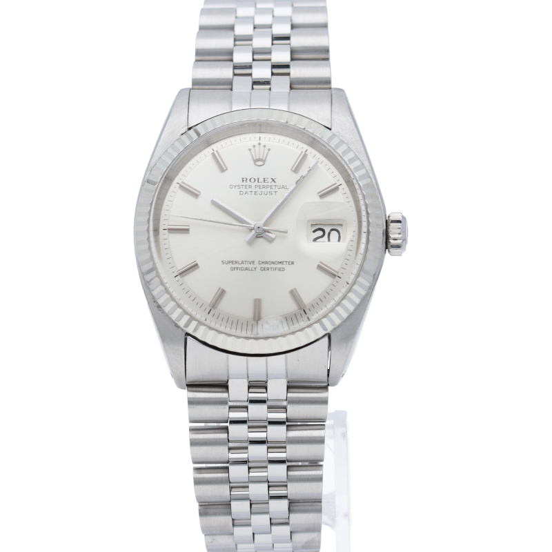 ロレックスのドレスウォッチの王道「デイトジャスト」。ホワイトゴールドとステンレスの組み合わせが高級感を感じさせる1本です。プラスチック風防仕様。