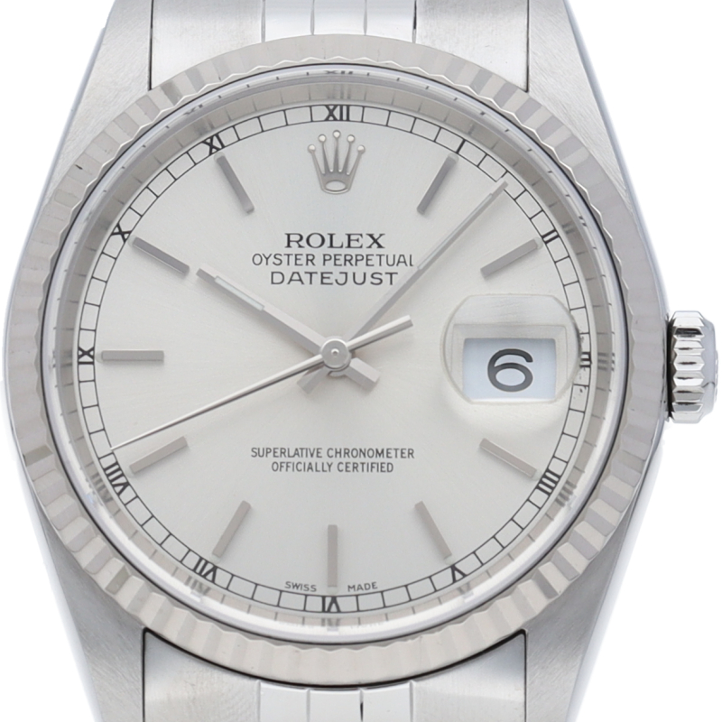 ロレックスのドレスウォッチの王道「デイトジャスト」。ホワイトゴールドとステンレスの組み合わせが上品で高級感を感じさせる1本です。