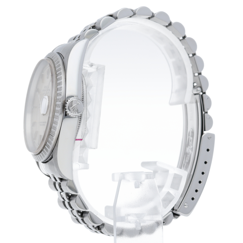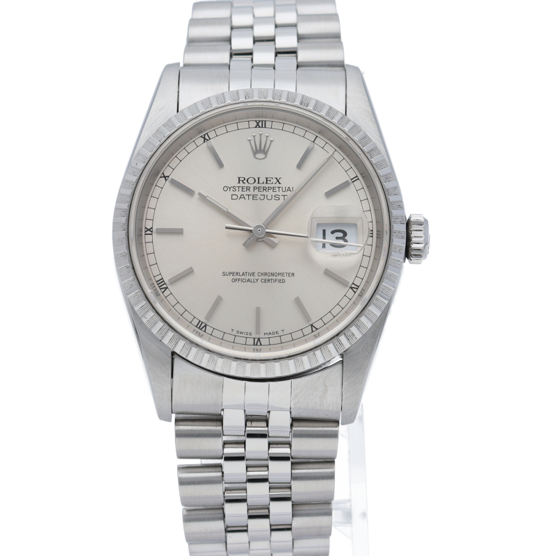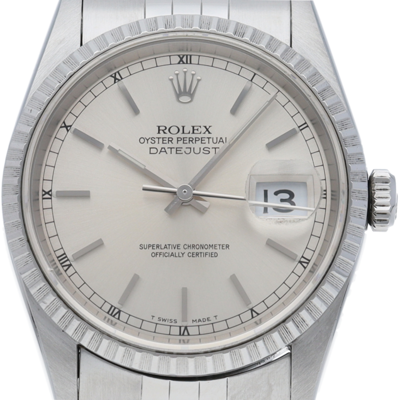 ロレックスのドレスウォッチの王道「デイトジャスト」。エンジンターンドベゼルとデイト表示機能もついてスポーティーで人気度の高い1本です。