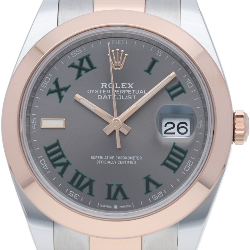 ロレックスのドレスウォッチで幅広い年齢層に愛されている「デイトジャスト」。こちらはデイトジャストの中でケースサイズが41mmと最も大型です。ピンクゴールドとステンレスのコンビ仕様。