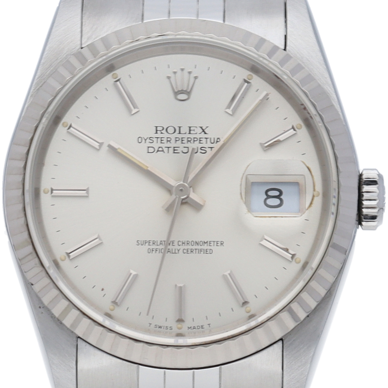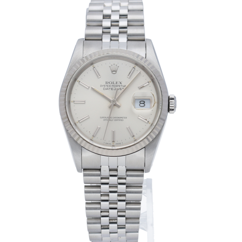 ロレックスのドレスウォッチの王道「デイトジャスト」。ホワイトゴールドとステンレスの組み合わせが高級感を感じさせる1本です。