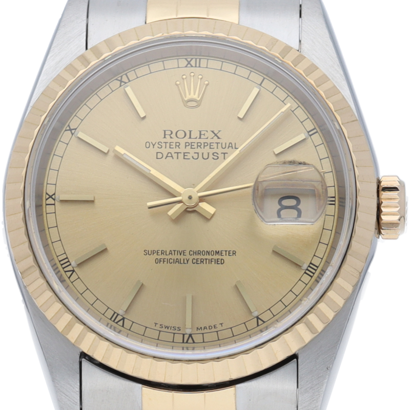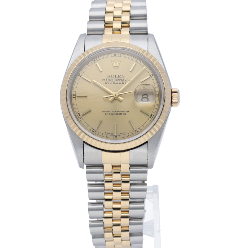 ロレックスのドレスウォッチの王道「デイトジャスト」。イエローゴールドとステンレスの組み合わせが上品で高級感を感じさせる1本です。