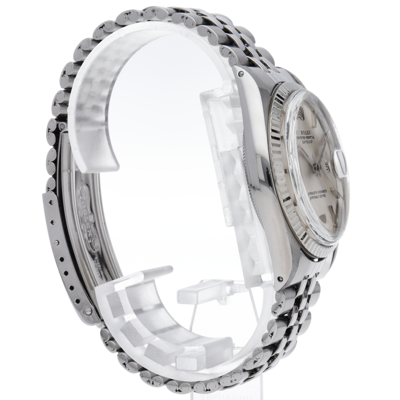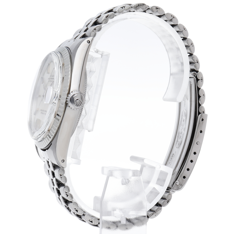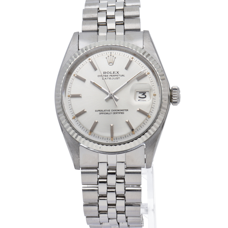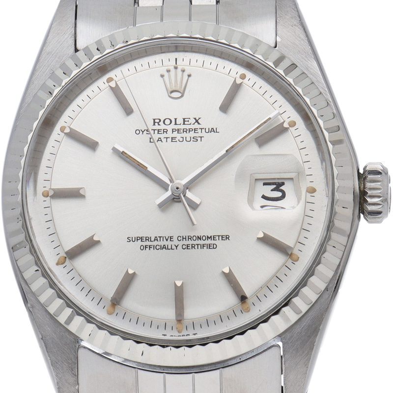 ロレックスのドレスウォッチの王道「デイトジャスト」。ホワイトゴールドとステンレスの組み合わせが高級感を感じさせる1本です。プラスチック風防仕様。