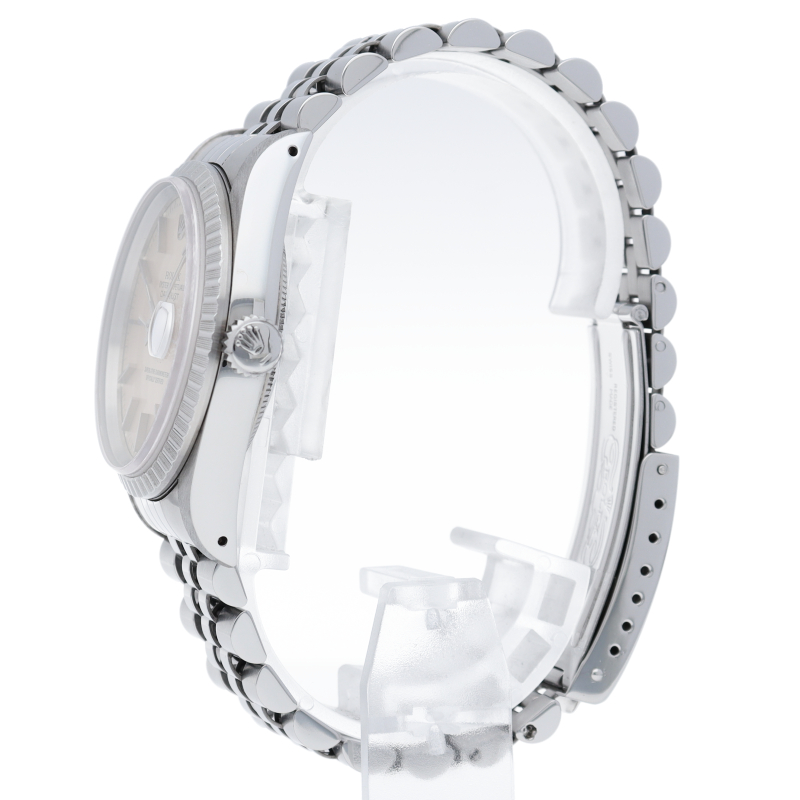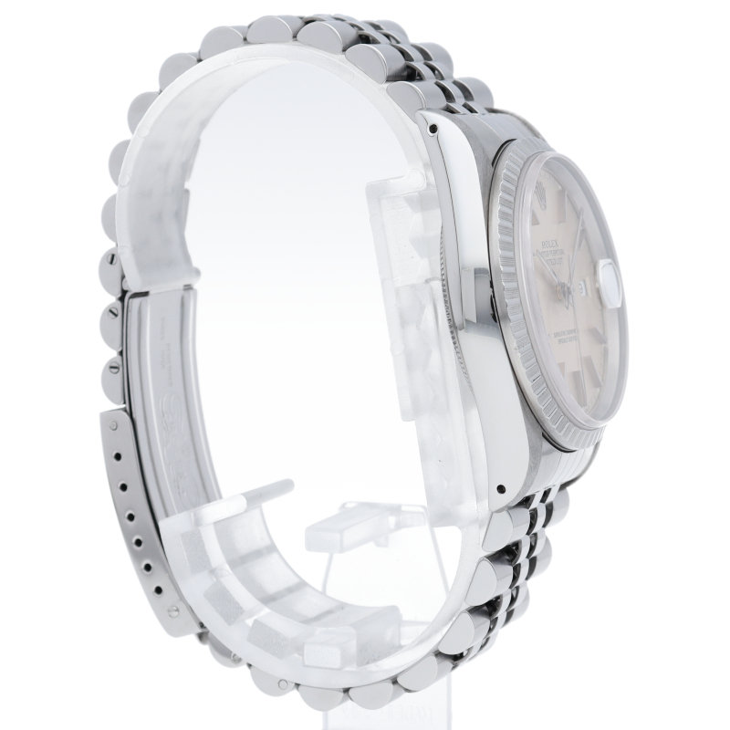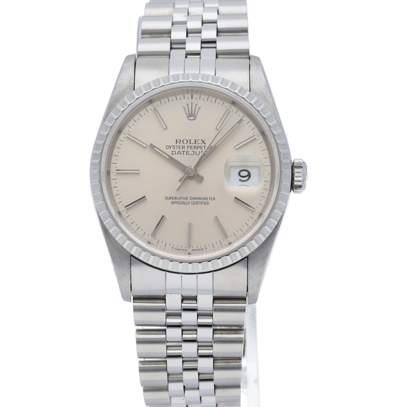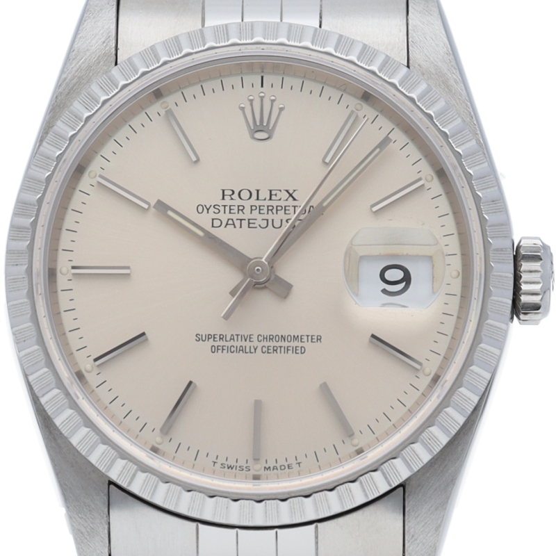 ロレックスのドレスウォッチの王道「デイトジャスト」。エンジンターンドベゼルとデイト表示機能もついてスポーティーで人気度の高い1本です。