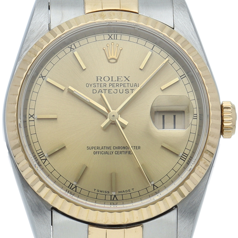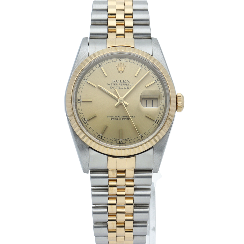 ロレックスのドレスウォッチの王道「デイトジャスト」。イエローゴールドとステンレスの組み合わせが上品で高級感を感じさせる1本です。