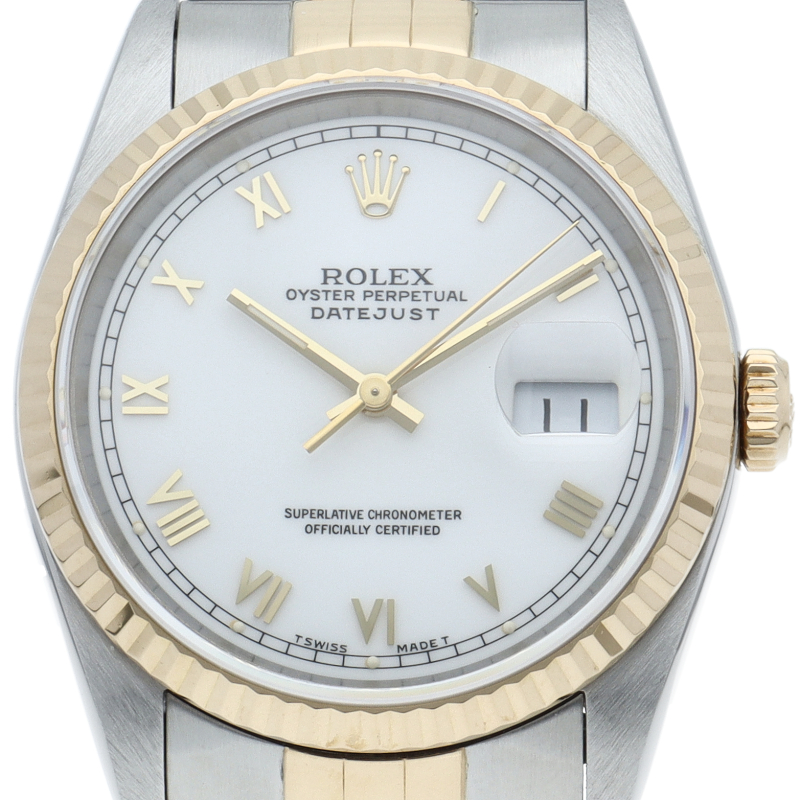 ロレックスのドレスウォッチの王道「デイトジャスト」。イエローゴールドとステンレスの組み合わせが上品で高級感を感じさせる1本です。