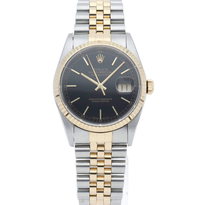 ロレックスのドレスウォッチの王道「デイトジャスト」。イエローゴールドとステンレスの組み合わせが上品で高級感を感じさせる1本です。