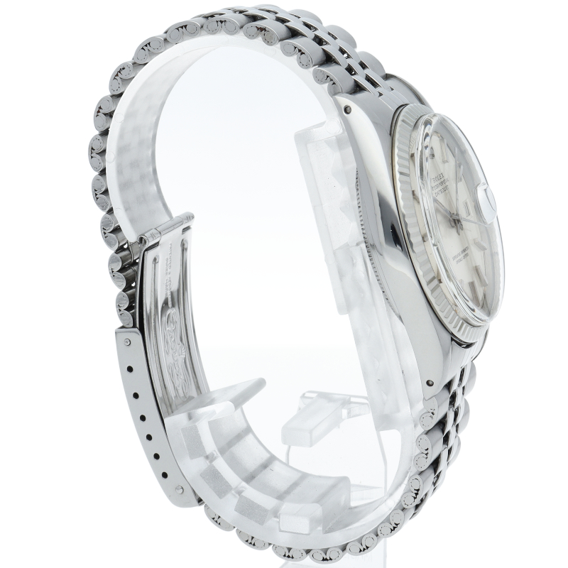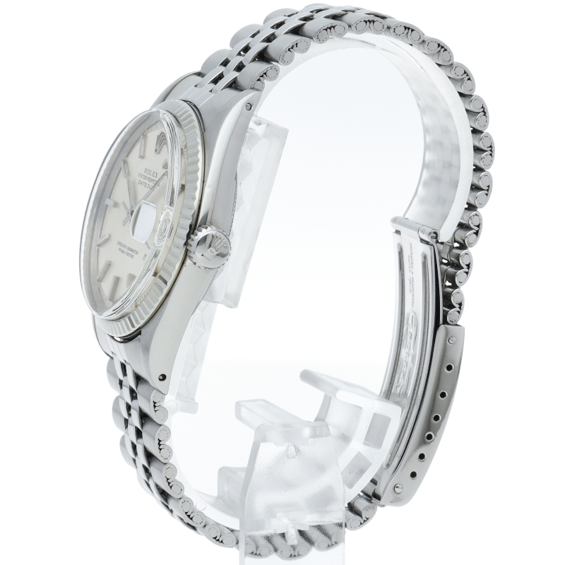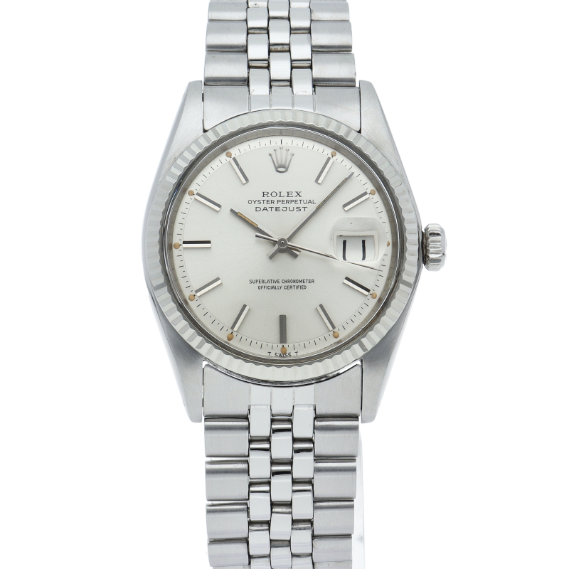 ロレックスのドレスウォッチの王道「デイトジャスト」。ホワイトゴールドとステンレスの組み合わせが高級感を感じさせる1本です。プラスチック風防仕様。