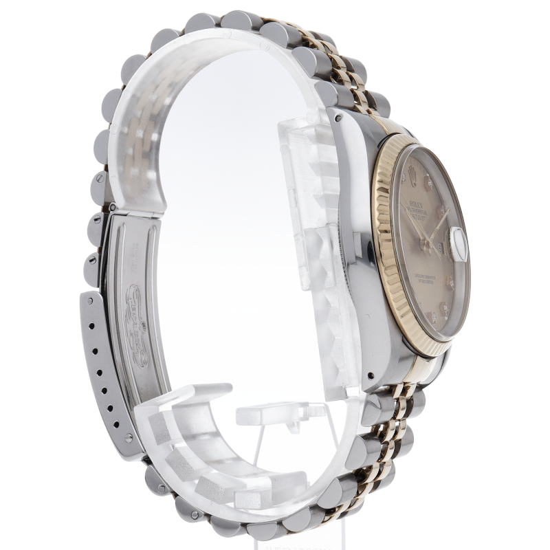ロレックスのドレスウォッチで幅広い年齢層に愛されている「デイトジャスト」。イエローゴールドとステンレスのコンビ仕様に10Pダイヤが施されております。