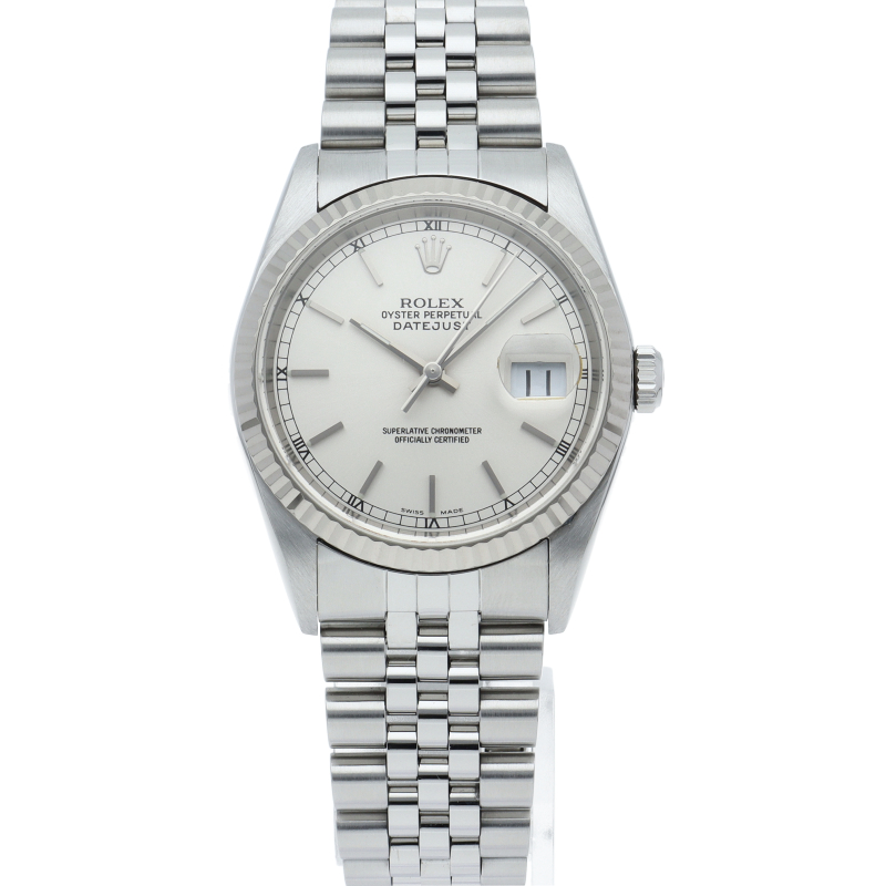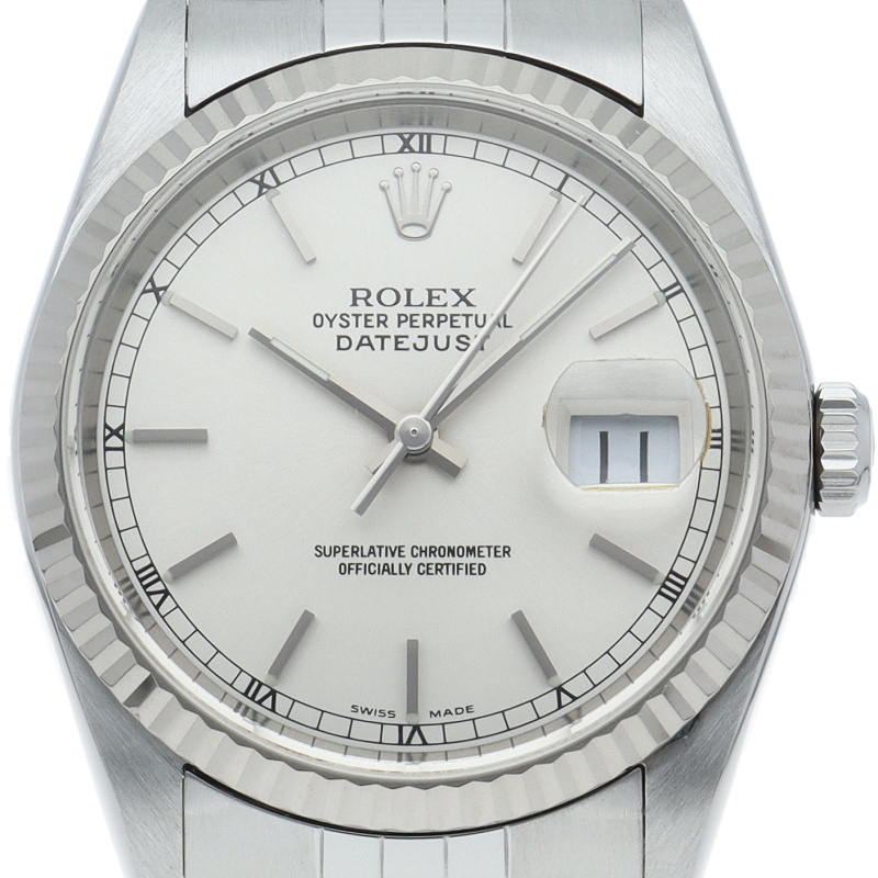 ロレックスのドレスウォッチの王道「デイトジャスト」。ホワイトゴールドとステンレスの組み合わせが上品で高級感を感じさせる1本です。