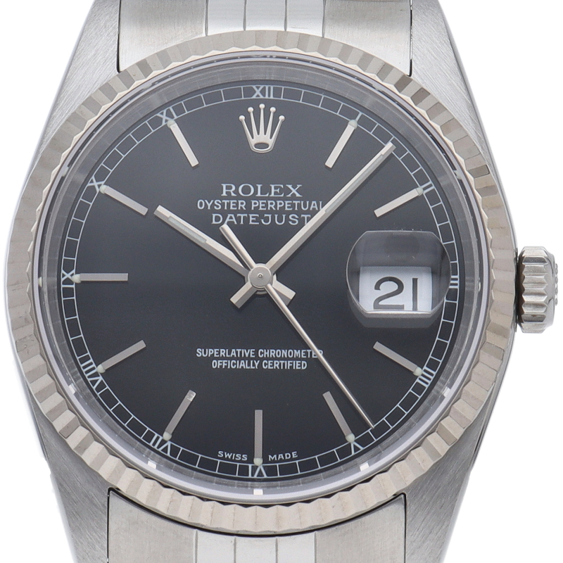 ロレックスのドレスウォッチの王道「デイトジャスト」。ホワイトゴールドとステンレスの組み合わせが上品で高級感を感じさせる1本です。