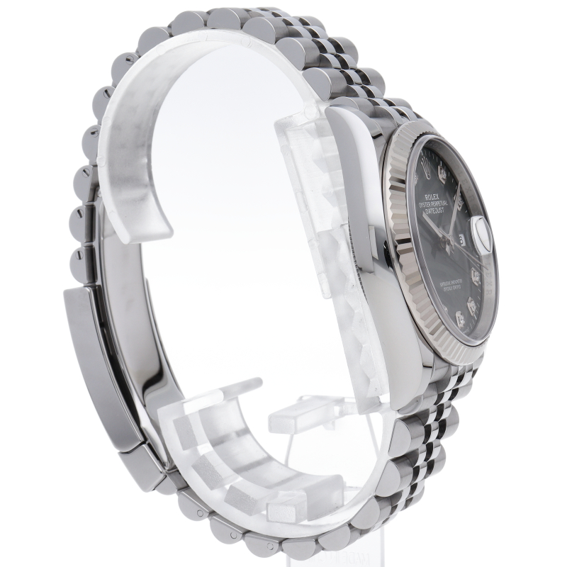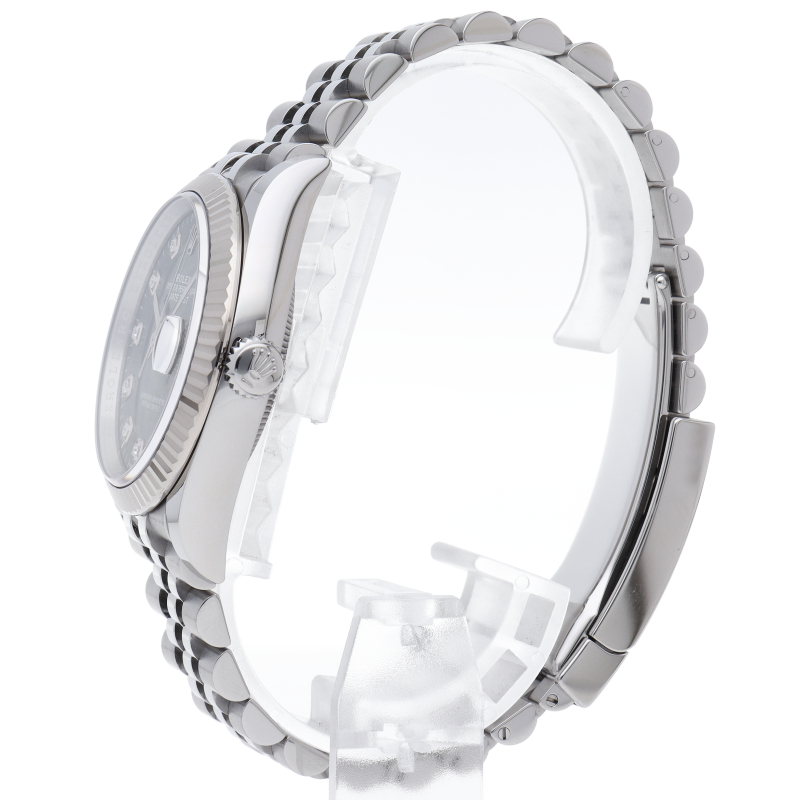 ロレックスを代表するドレスウォッチのデイトジャスト。こちらは2019年に発売。ロレックスによる完全自社製造ムーブメント「Cal.3235」が搭載されました。従来のロレックスムーブメントの約倍となる70時間のロングパワーリザーブを誇ります。ホワイトゴールドとステンレスのコンビ仕様に10Pダイヤが施されております。