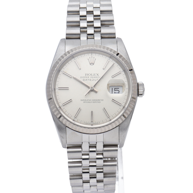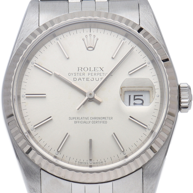 ロレックスのドレスウォッチの王道「デイトジャスト」。ホワイトゴールドとステンレスの組み合わせが上品で高級感を感じさせる1本です。