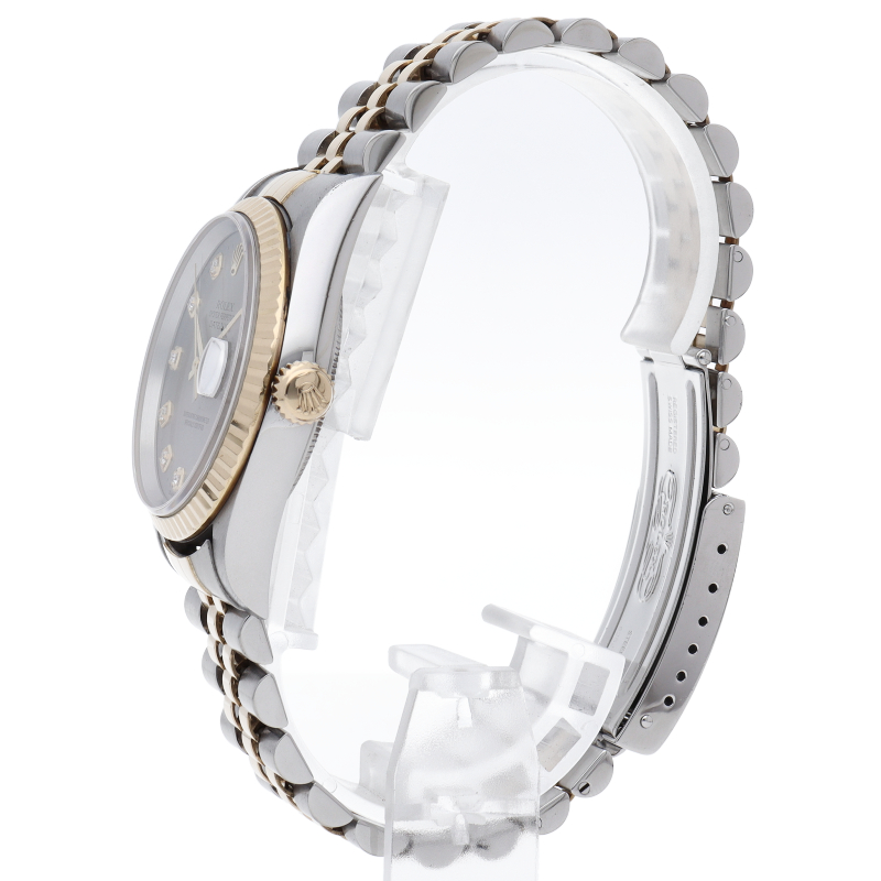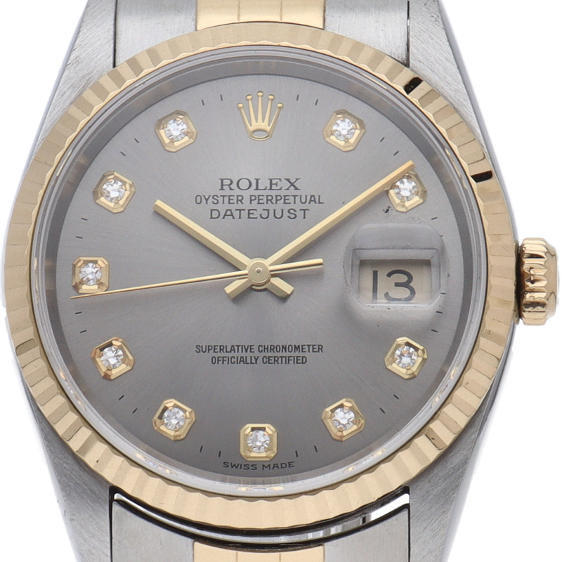 ロレックスのドレスウォッチで幅広い年齢層に愛されている「デイトジャスト」。イエローゴールドとステンレスのコンビ仕様に10Pダイヤが施されております。