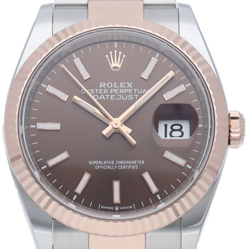 ケース径36mmのメンズモデル「デイトジャスト36」。14件もの特許を取得し、新開発の脱進機のクロナジーエスケープメントを装備した上で70時間ものロングパワーリザーブを確保した自社開発キャリバー3235を搭載します。