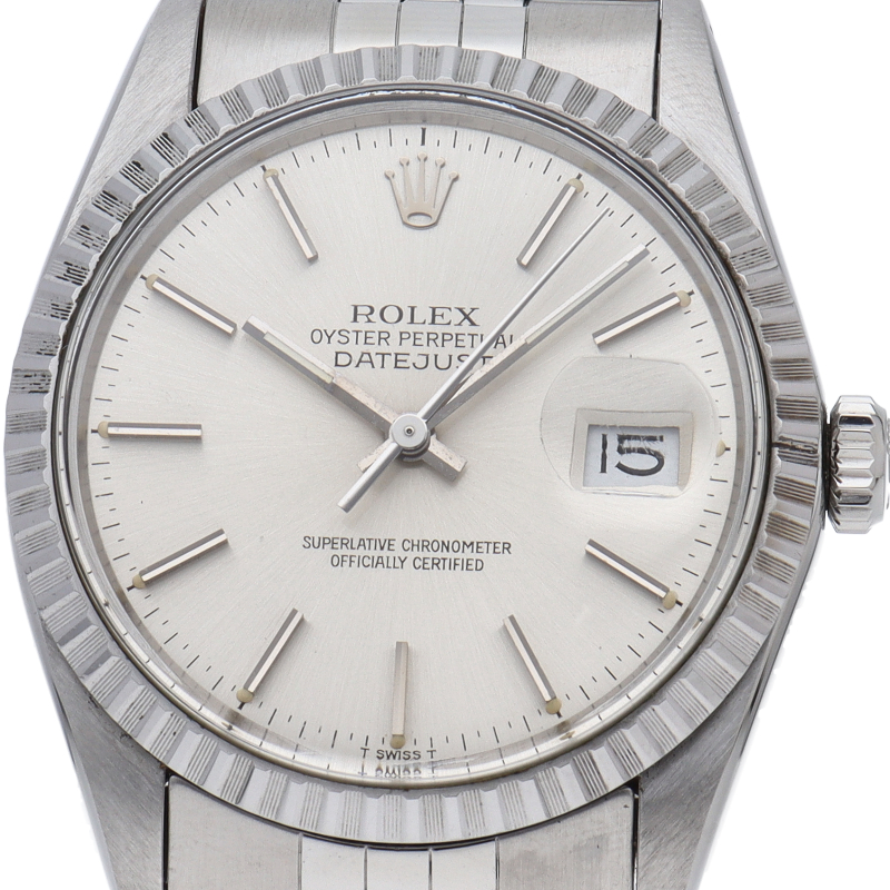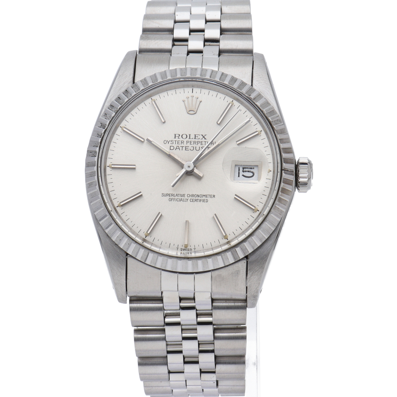 前作の1603と違い、リューズ操作による日付のクイックチェンジ機能が付いています。エンジンターンドベゼルやプラスチック風防を備え、旧作ならではの味わいがあるモデルです。