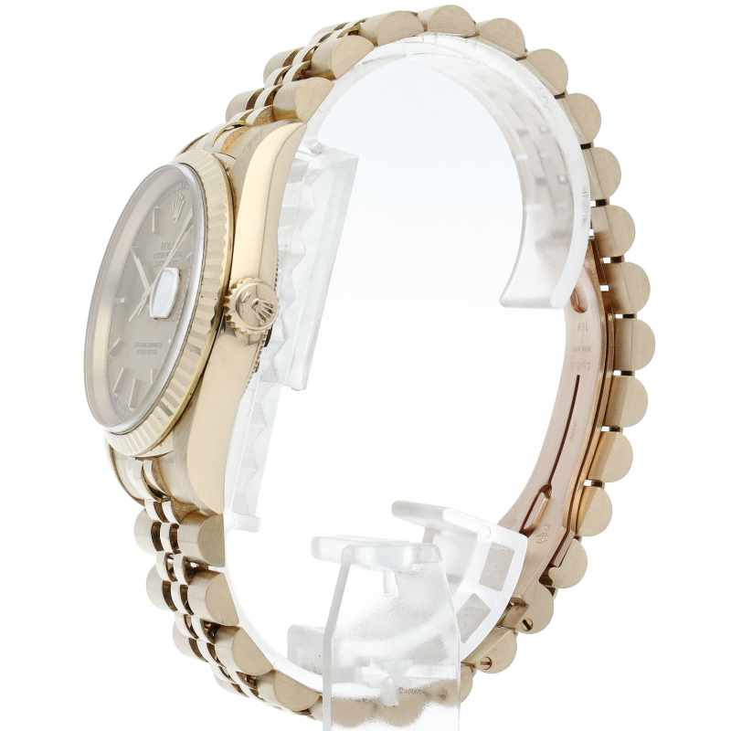 ロレックスのドレスウォッチで幅広い年齢層に愛されているデイトジャスト。イエローゴールド無垢の豪華な一本です。