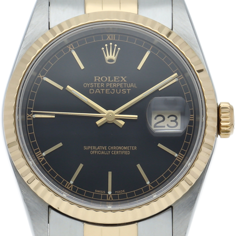 ロレックスのドレスウォッチの王道「デイトジャスト」。イエローゴールドとステンレスの組み合わせが上品で高級感を感じさせる1本です。