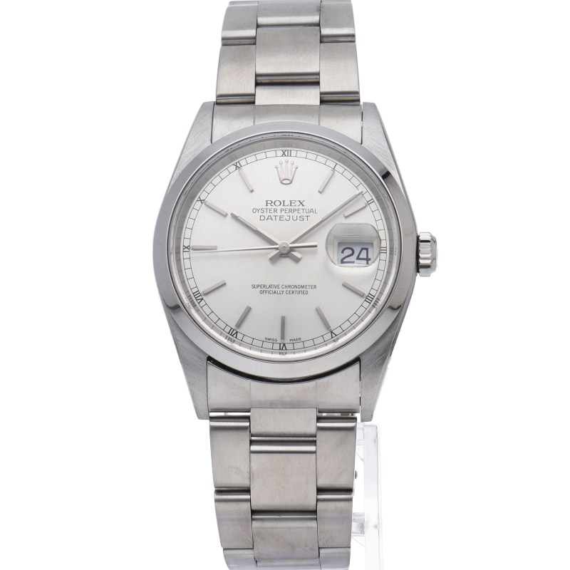 ロレックスのドレスウォッチの王道「デイトジャスト」。ポリッシュベゼルとデイト表示機能もついてスポーティーで人気度の高い1本です。