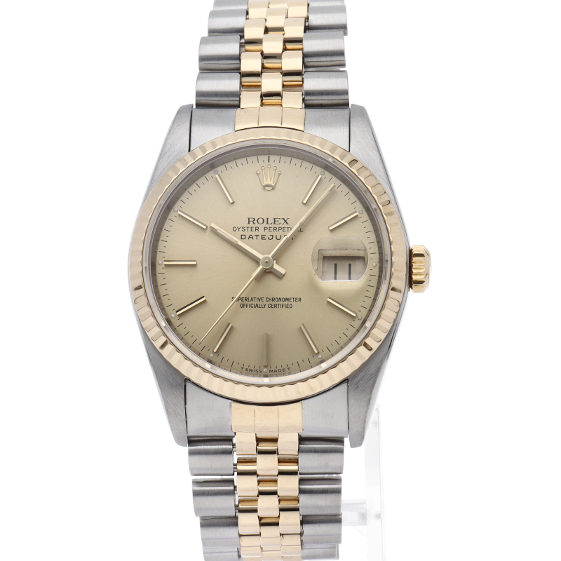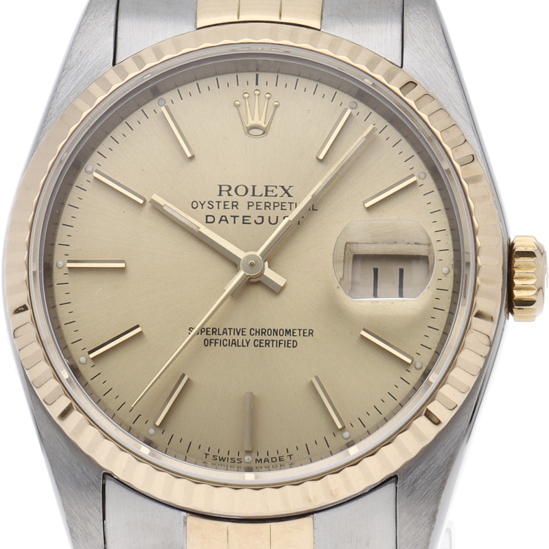 ロレックスのドレスウォッチの王道「デイトジャスト」。イエローゴールドとステンレスの組み合わせが上品で高級感を感じさせる1本です。