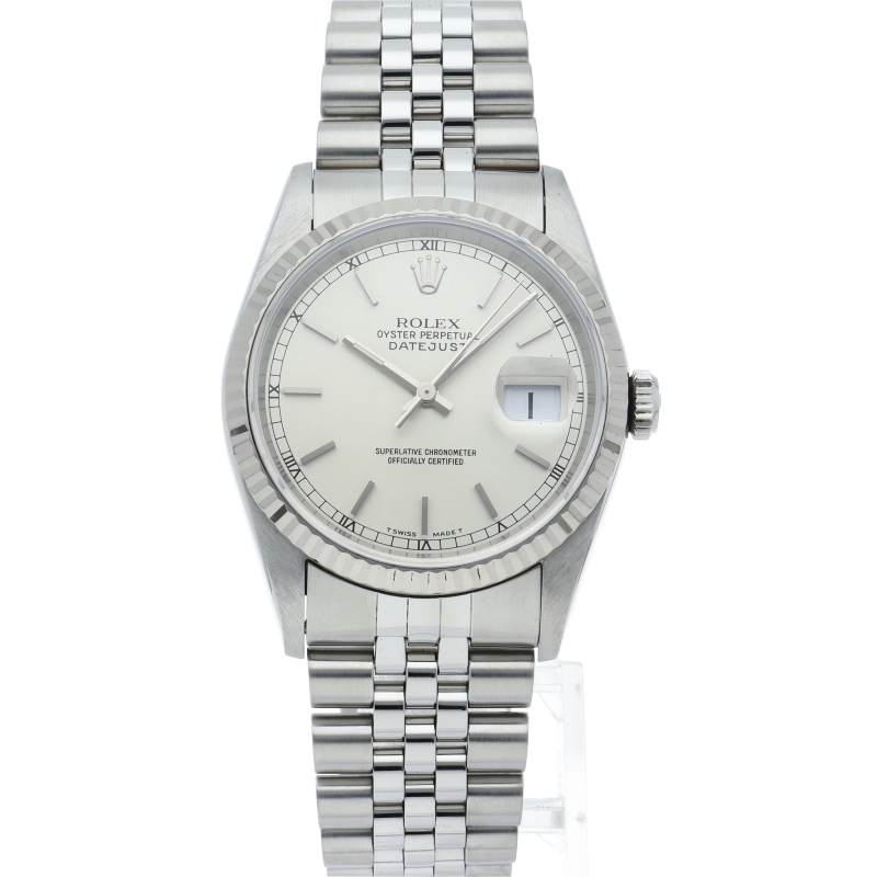 ロレックスのドレスウォッチの王道「デイトジャスト」。ホワイトゴールドとステンレスの組み合わせが上品で高級感を感じさせる1本です。