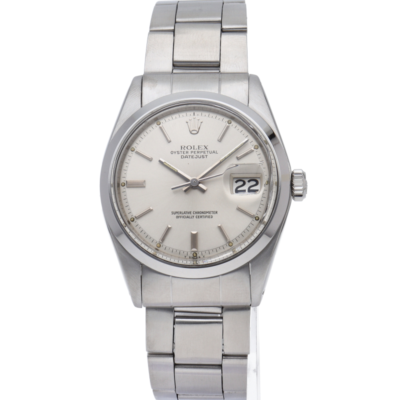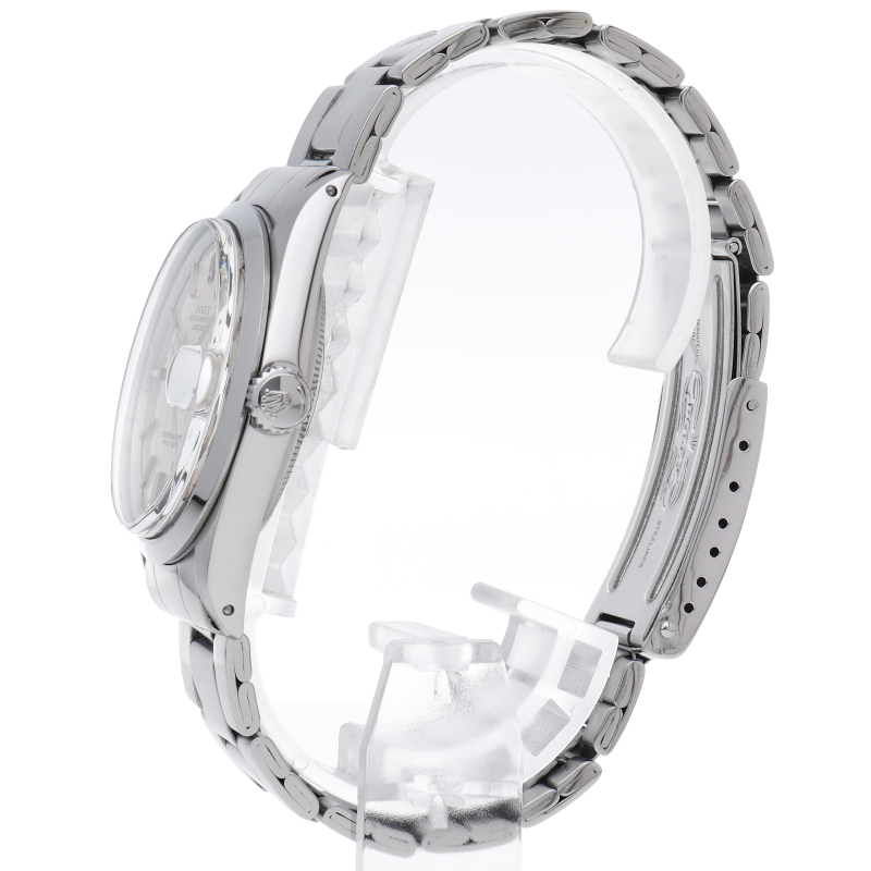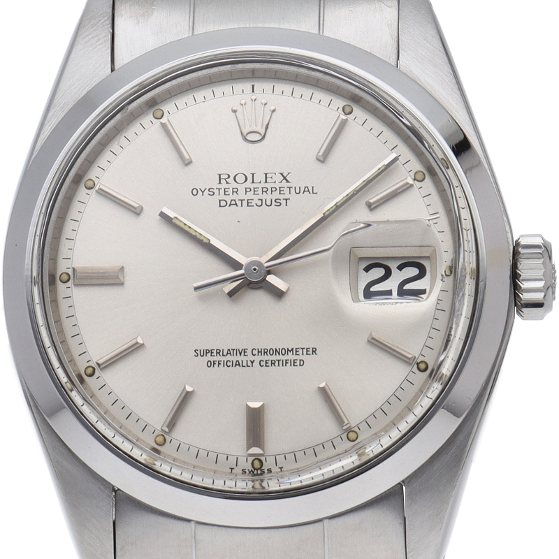 ロレックスドレスウォッチの王道「デイトジャスト」。デイトジャストのスムースベゼルは珍しいモデルです。プラスチック風防仕様。