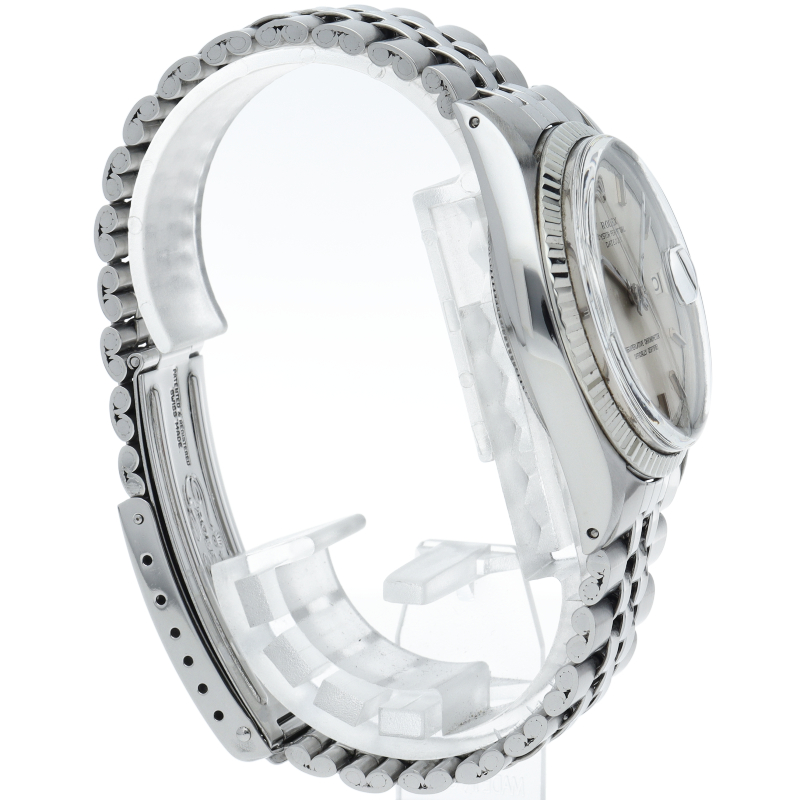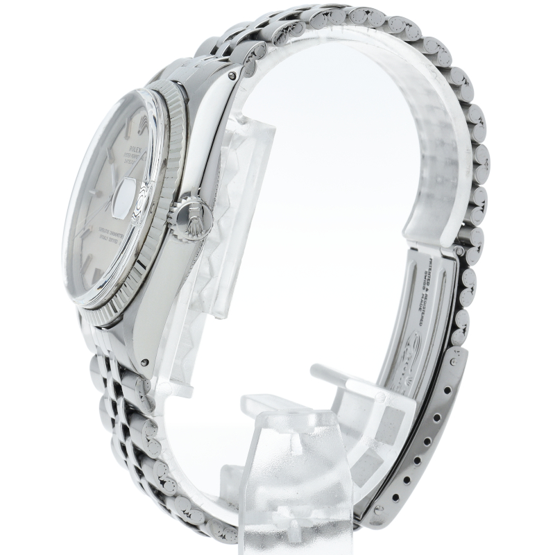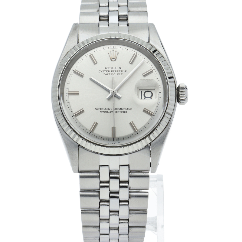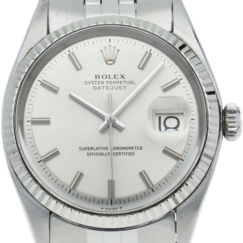 ロレックスのドレスウォッチの王道「デイトジャスト」。ホワイトゴールドとステンレスの組み合わせが高級感を感じさせる1本です。プラスチック風防仕様。