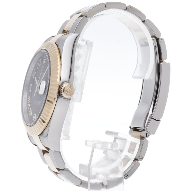 41ミリの大型サイズにボリュームアップし視認性も存在感も高まったデイトジャスト2。ケースの大型化に合わせてフルーテッドベゼルも太くなっておりますが、全く違和感が無くムーブメントも、磁力の影響を受けにくいパラクロム製ヒゲゼンマイを採用した Cal.3136を搭載しています。