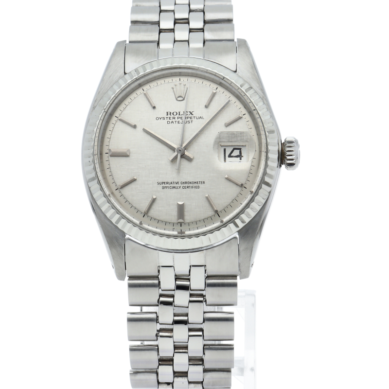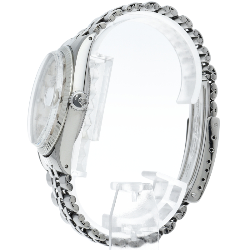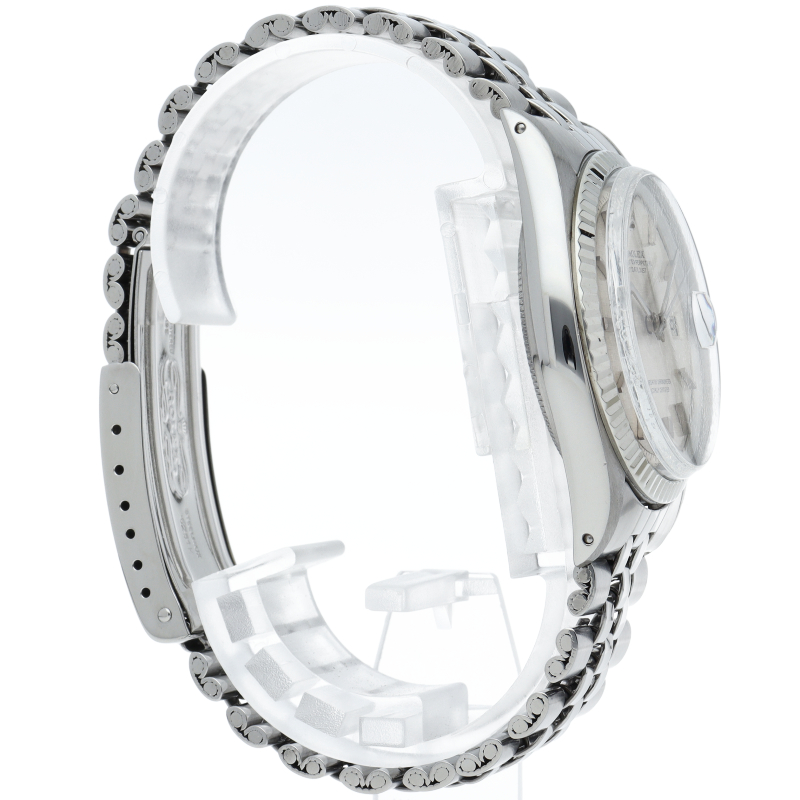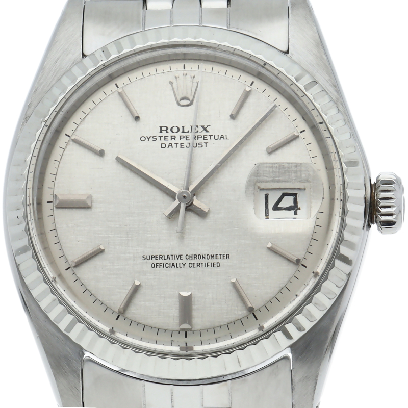ロレックスのドレスウォッチの王道「デイトジャスト」。ホワイトゴールドとステンレスの組み合わせが高級感を感じさせる1本です。モザイク文字盤。