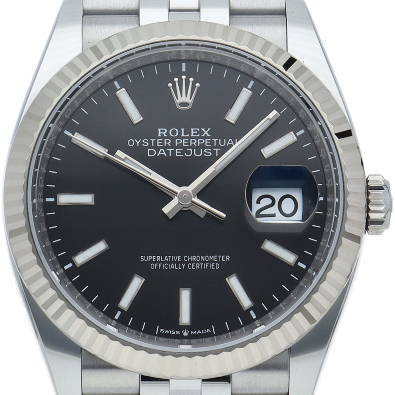 2018年発表のニューモデル、ケース径36mmのメンズモデル「デイトジャスト36」。14件もの特許を取得し、新開発の脱進機のクロナジーエスケープメントを装備した上で70時間ものロングパワーリザーブを確保した自社開発キャリバー3235を搭載します。
