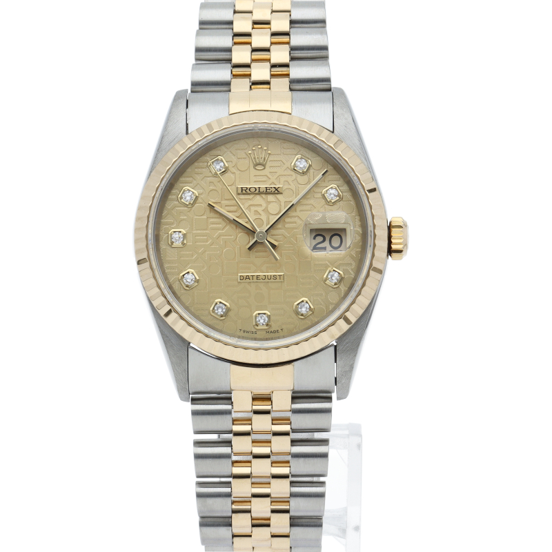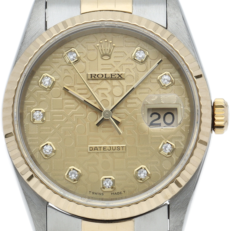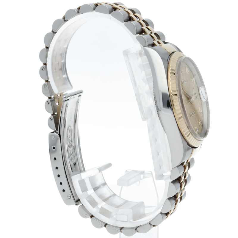 ロレックスのドレスウォッチの王道「デイトジャスト」。イエローゴールドとステンレスの組み合わせが上品で高級感を感じさせる1本です。