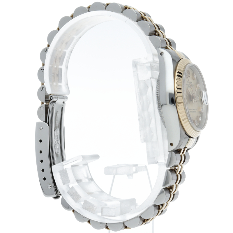 ロレックスのドレスウォッチで幅広い年齢層に愛されているデイトジャスト。イエローゴールドとステンレスのコンビ仕様に10Pダイヤが施され豪華です。
