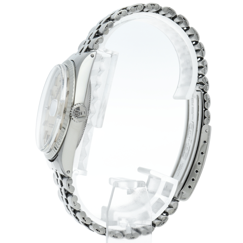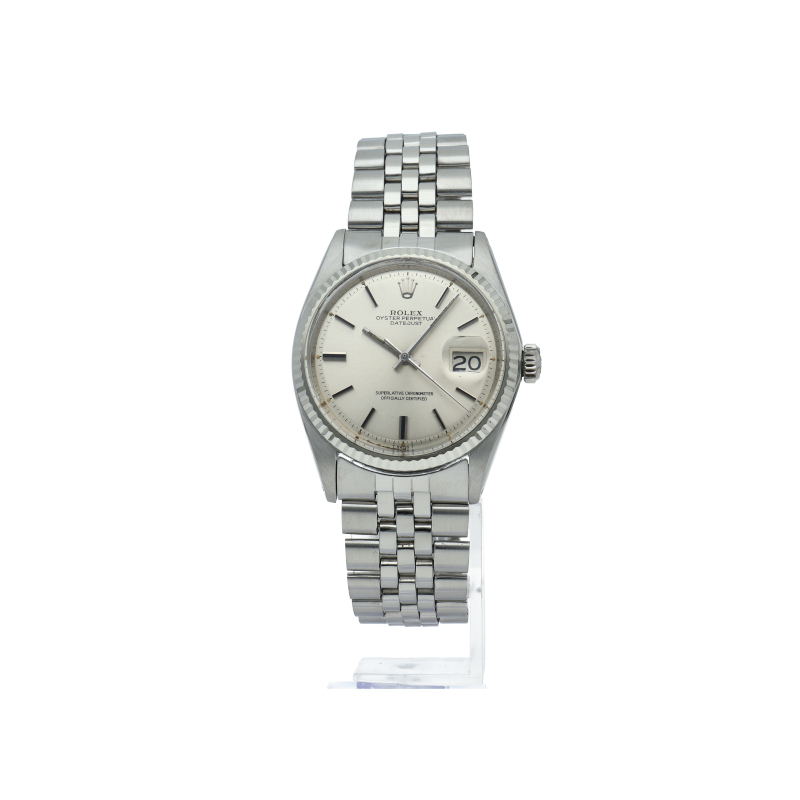 ロレックスのドレスウォッチの王道「デイトジャスト」。ホワイトゴールドとステンレスの組み合わせが高級感を感じさせる1本です。プラスチック風防仕様。