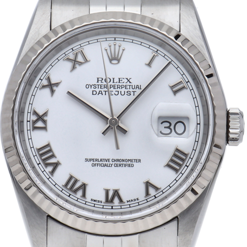 ロレックスのドレスウォッチの王道「デイトジャスト」。ホワイトゴールドとステンレスの組み合わせが上品で高級感を感じさせる1本です。