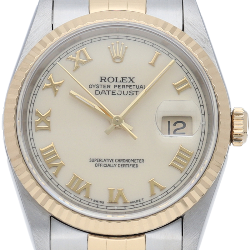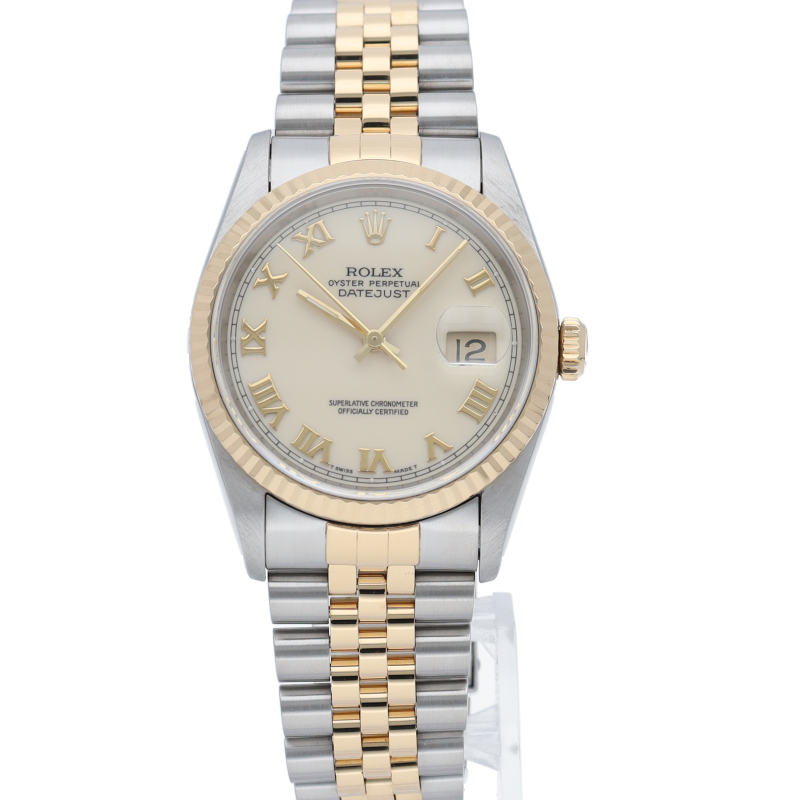 ロレックスのドレスウォッチの王道「デイトジャスト」。イエローゴールドとステンレスの組み合わせが上品で高級感を感じさせる1本です。