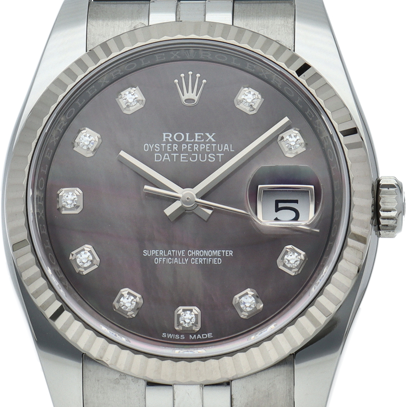 デイトジャスト36 メンズ時計 10Pダイヤ ブラックシェル