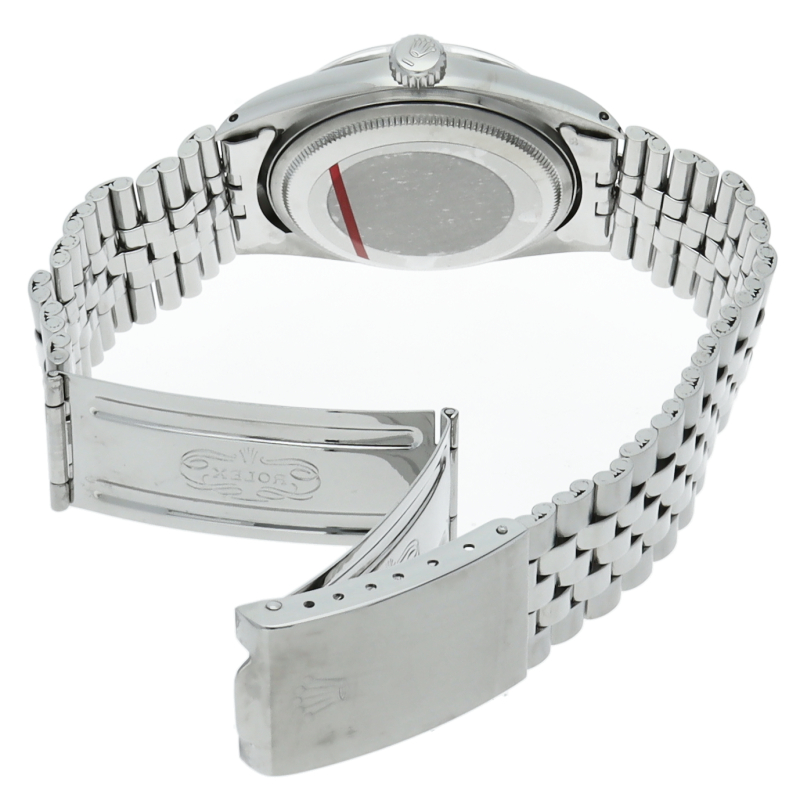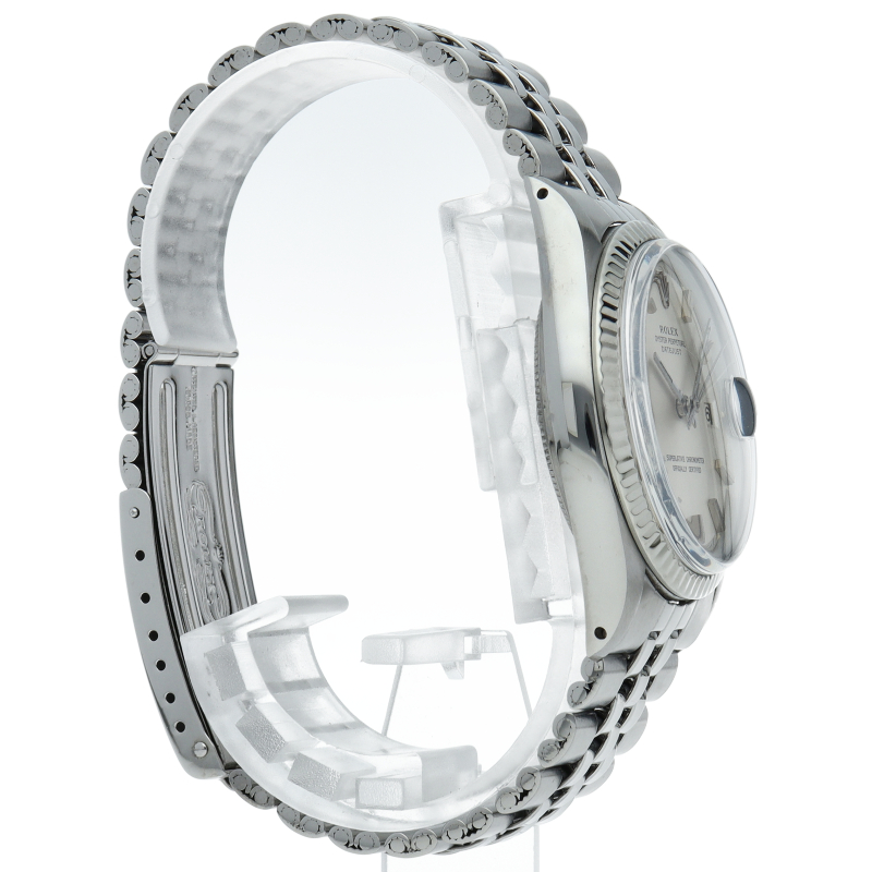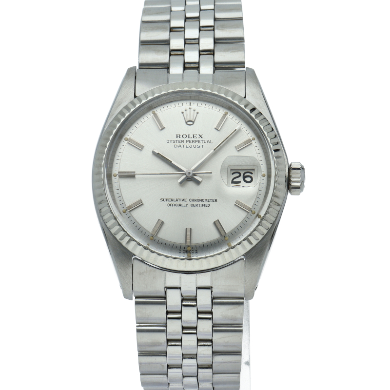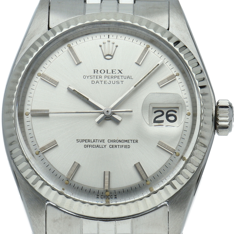 ロレックスのドレスウォッチの王道「デイトジャスト」。ホワイトゴールドとステンレスの組み合わせが高級感を感じさせる1本です。プラスチック風防仕様。