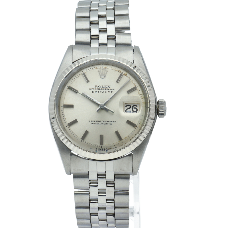 ロレックスドレスウォッチの王道「デイトジャスト」。ホワイトゴールドとステンレスの組み合わせが高級感を感じさせる1本です。プラスチック風防仕様。